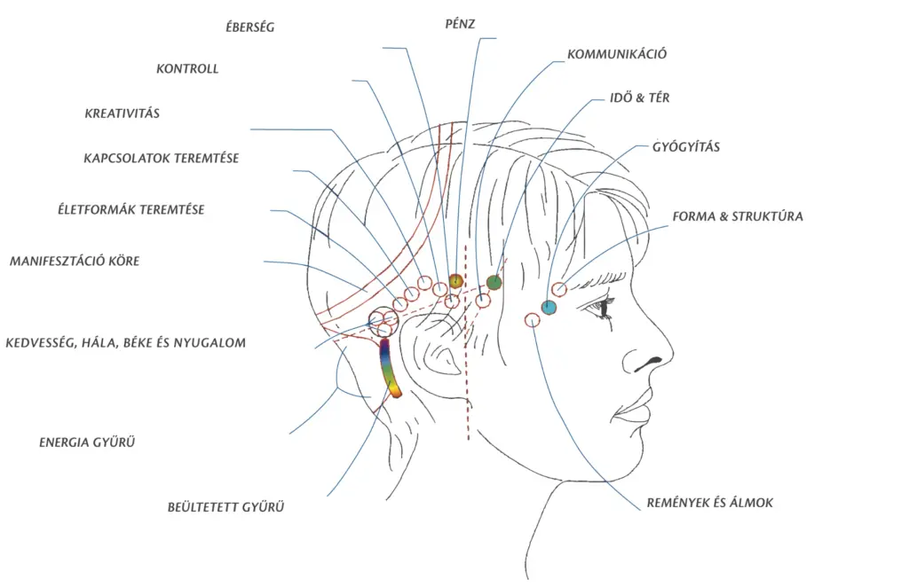 A fejen 32 ún. BAR® pont található. Ezeket finoman, meghatározott sorrendben érintve feloldjuk azokat a blokkokat, amik akadályoznak a különböző életterületeken.